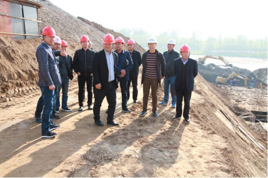 荊州區水利和湖泊局副局長楊波(右五)帶領項目各方負責人(rén)檢查施工現(xiàn)場(chǎng)