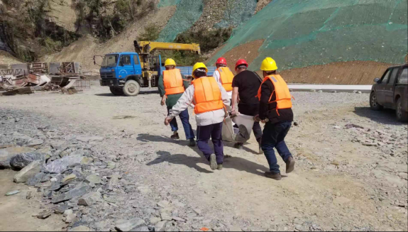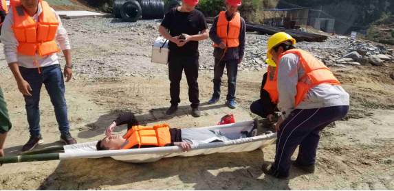 一(yī)、依據《中華人(rén)民(mín)共和國突發事(shì)件應對法》、《國家突發公共事(shì)件總體(tǐ)應急預案》、《中華人(rén)民(mín)共和國水法》、《中華人(rén)民(mín)共和國防洪法》等,結合公司實際,特制定本演練方案。 二、演練科目 防汛應急預案搶險救援演練 三、演練目的 1、現(xiàn)場(chǎng)處置突發自然災害的能(néng)力; 2、施工人(rén)員(yuán)的應急搶險救援能(néng)力; 3、項目應急搶險救援措施的有效性; 4、項目信息通訊的暢通程度; 5、防汛應急預案的可執行性。 四、演練時(shí)間(jiān)2021年3月(yuè)(yuè)24日10點30分(fēn)。 五、演練地點 貴州省黔東南(nán)州從江縣頂洞村(cūn)西(xī)山水庫合同施工現(xiàn)場(chǎng) 六、組織機構 1、演練組織:貴州西(xī)山水庫合同項目部 2、演練總指揮:李光富(項目總監) 3、演練執行:申凱凱(技術負責人(rén))、覃翔(專職安全員(yuán))、吳勝雲(安全員(yuán)) 4、演練小組 ⑴、搶險組(負責搶運現(xiàn)場(chǎng)機具材料以及傷員(yuán)轉移) 組長:覃翔 組員(yuán):搶運設備人(rén)員(yuán)10人(rén)、轉移傷員(yuán)人(rén)員(yuán)6人(rén) ⑵、疏散組(負責現(xiàn)場(chǎng)人(rén)員(yuán)疏散轉移工作(zuò),布臵安全警戒、維持現(xiàn)場(chǎng)秩序) 組長:吳勝雲 組員(yuán):轉移人(rén)員(yuán)6人(rén)+現(xiàn)場(chǎng)警戒、維持秩序6人(rén) ⑶、救護組(負責現(xiàn)場(chǎng)的醫(yī)療救護及傷員(yuán)情況調查): 組長:潘遠(yuǎn)兵 組員(yuán):衛生(shēng)救護人(rén)員(yuán)4人(rén) ⑷、配合人(rén)員(yuán):現(xiàn)場(chǎng)作(zuò)業工人(rén)10人(rén) 七、參加演練車輛、設備救護車1輛(停在演練現(xiàn)場(chǎng)外約1km處待命)、指揮車1輛、皮卡車2輛、50鈴汽車1輛、裝載機1台。電焊機1台、鋼筋切斷機1台、半成品鋼筋少量、帶支架的配電箱一(yī)個(gè)。 八、具體(tǐ)演練程序本次演練科目:模拟汛期來(lái)臨,項目所在地區普降暴雨引起施工現(xiàn)場(chǎng)一(yī)處河(hé)道水位上(shàng)漲,威脅到施工人(rén)員(yuán)生(shēng)命安全和設備财産安全,開展應急搶險救援。 (一(yī))演練場(chǎng)景布置 ⑴、地點:貴州西(xī)山水庫項目大壩基坑,導流洞、橋梁班組生(shēng)活營地 ⑵、現(xiàn)場(chǎng)準備工作(zuò):利用現(xiàn)場(chǎng)大壩基坑以及生(shēng)活營區的地形,演練現(xiàn)場(chǎng)放(fàng)臵電焊機、鋼筋切斷機、半成品鋼筋及配電箱等機具,施工現(xiàn)場(chǎng)100m外區域停放(fàng)一(yī)台裝載機、一(yī)台挖機。裝有10把鐵鍬的50鈴汽車停放(fàng)在演練現(xiàn)場(chǎng)100m外。 ⑶、技術負責人(rén)講話(huà)期間(jiān):所有參加演練人(rén)員(yuán)在主席台下(xià)列縱隊聽(tīng)講。 ⑷、講完話(huà)後,各參加演練人(rén)員(yuán)退場(chǎng),觀看人(rén)員(yuán)退到主席台兩側等待觀看(大約5分(fēn)鍾)。 ⑸、參加演練人(rén)員(yuán)就(jiù)位。 ① 10名工人(rén) 在險情地段施工,現(xiàn)場(chǎng)安全員(yuán):在附近區域巡查,現(xiàn)場(chǎng)工程師:在現(xiàn)場(chǎng)指導作(zuò)業。 ②搶險組:在演練現(xiàn)場(chǎng)外約50m處待命; ③疏散組:在演練現(xiàn)場(chǎng)外約50m處待命; ④救護組:在演練現(xiàn)場(chǎng)外約50m處待命。 (二)演練開始前 現(xiàn)場(chǎng)指揮長:跑步到主席台前,面向總指揮報(bào)告:“報(bào)告總指揮,貴州西(xī)山水庫合同項目防汛應急預案演練已準備完畢,是否開始,請指示”? 總指揮:“演練開始”。現(xiàn)場(chǎng)指揮長“是”,“各小組注意,演練馬上(shàng)開始,各小組報(bào)告準備情況”。各小組依次報(bào)告準備情況(順序:搶險組、疏散組、救護組、配合組)。此時(shí)演練開始。 (三)演練開始(場(chǎng)景說(shuō)明) 10個(gè)工人(rén)(姓名): 在大壩基坑施工現(xiàn)場(chǎng)作(zuò)業,突遇大雨天氣,河(hé)道水位急速上(shàng)漲,有淹沒施工作(zuò)業區機具、材料危險,現(xiàn)場(chǎng)人(rén)員(yuán)、機具材料急需轉移。現(xiàn)場(chǎng)工程師:看到雨勢較大,在查看河(hé)道水位後對施工人(rén)員(yuán)喊道:“雨越來(lái)越大了(le),河(hé)道水位上(shàng)漲得厲害,馬上(shàng)要淹了(le),大家快(kuài)走”。工班長喊道:“(電工)王金(jīn)波,趕快(kuài)把電斷了(le)。”工人(rén)開始撤離現(xiàn)場(chǎng),其中現(xiàn)場(chǎng)電工在關(guān)閉施工現(xiàn)場(chǎng)電源後撤離時(shí)滑倒,碰破頭部受傷。工班長:看到有人(rén)受傷後跑向受傷人(rén)員(yuán),并喊叫:“有人(rén)受傷了(le),快(kuài)來(lái)幫忙!”。其他施工人(rén)員(yuán)立即跑向傷者,圍到傷者旁邊。現(xiàn)場(chǎng)工程師:向安全員(yuán):喊道:有人(rén)受傷了(le),快(kuài)過來(lái)!”安全員(yuán):向受傷者跑去。 (四)應急預案啓動 1、搶救傷員(yuán) 安全員(yuán):查看受傷人(rén)員(yuán)後,立即掏出對講機通知搶險組各人(rén)員(yuán):“大壩基坑施工現(xiàn)場(chǎng)出現(xiàn)洪澇災害險情,有1名工人(rén)受傷,傷員(yuán)頭部出血并且昏迷,請速派救護車支援(重複2遍),請安排擔架将受傷人(rén)員(yuán)擡至安全區域,并進行急救措施,在路(lù)口迎接救護車轉移至鎮醫(yī)院。 2、向上(shàng)級領導報(bào)告 專職安全員(yuán):跑向受傷人(rén)員(yuán)後,觀察傷者情況,用對講機向現(xiàn)場(chǎng)指揮長報(bào)告,“在大壩基坑出現(xiàn)洪